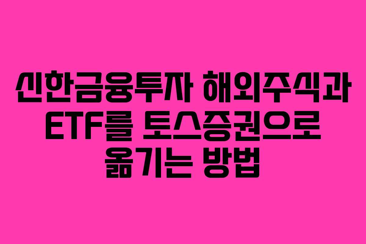 신한금융투자에 있는 해외주식과 ETF를 토스증권으로 옮기는 과정은 생각보다 간단하다. 이 글에서는 필요한 준비물과 절차를 단계별로 설명하겠다. 이를 통해 자산을 효율적으로 통합하고 관리할 수 있는 방법을 안내한다.