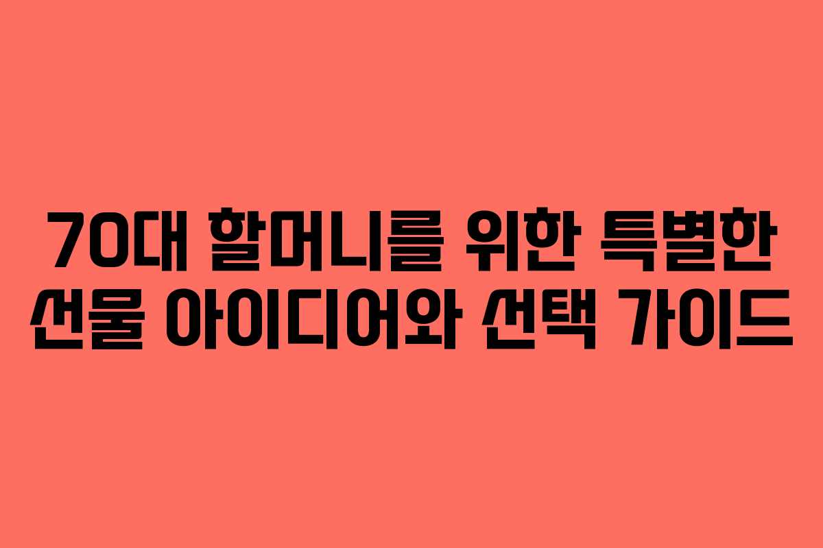 70대 할머니를 위한 선물 선택은 언제나 고민스러운 일입니다. 아이디어가 다양하지만, 진정으로 마음에 드는 선물을 찾는 것은 쉽지 않습니다. 이번 글에서는 할머니께서 좋아하실 만한 선물 옵션을 정리하였으며, 각 아이템의 특징과 선택 노하우를 간략히 소개합니다. 할머니의 행복한 미소를 위해 최적의 선물을 준비해 보세요.