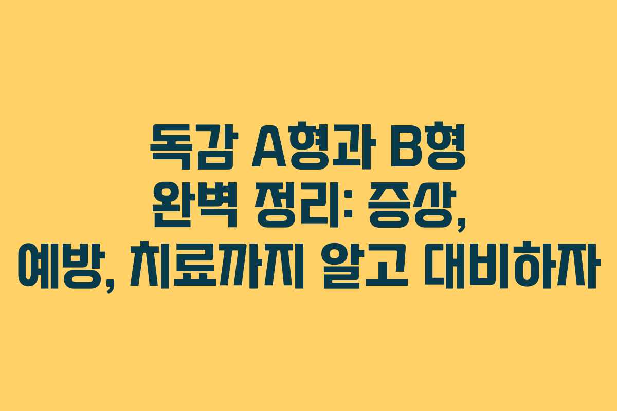 독감은 매년 많은 사람들에게 영향을 미치는 질환으로, 특히 A형과 B형 바이러스에 의해 발생합니다. 이 글에서는 A형과 B형 독감의 증상, 잠복기, 격리 및 예방 방법을 상세히 정리하여 독감 시즌을 준비하는 데 도움을 줄 것입니다. A형과 B형의 차이점을 이해하고, 적절한 예방 및 치료 방법을 숙지하여 건강을 지키는 것이 중요합니다.