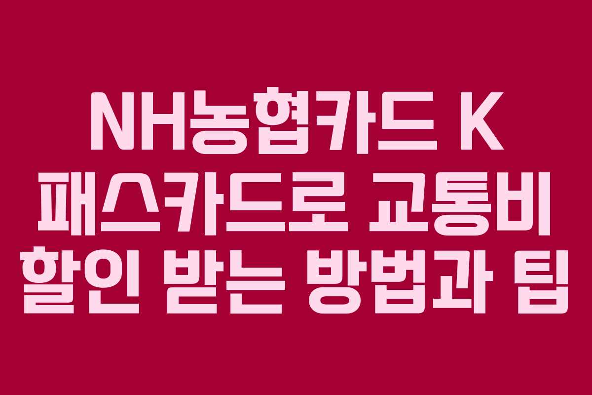 NH농협카드 K 패스카드는 대중교통을 자주 이용하는 소비자에게 유용한 할인 혜택을 제공합니다. 이 카드를 통해 교통비를 절약하는 방법과 그 혜택을 자세히 살펴보겠습니다. 본 가이드는 실질적인 절약 효과를 제공하는 정보를 담고 있습니다.