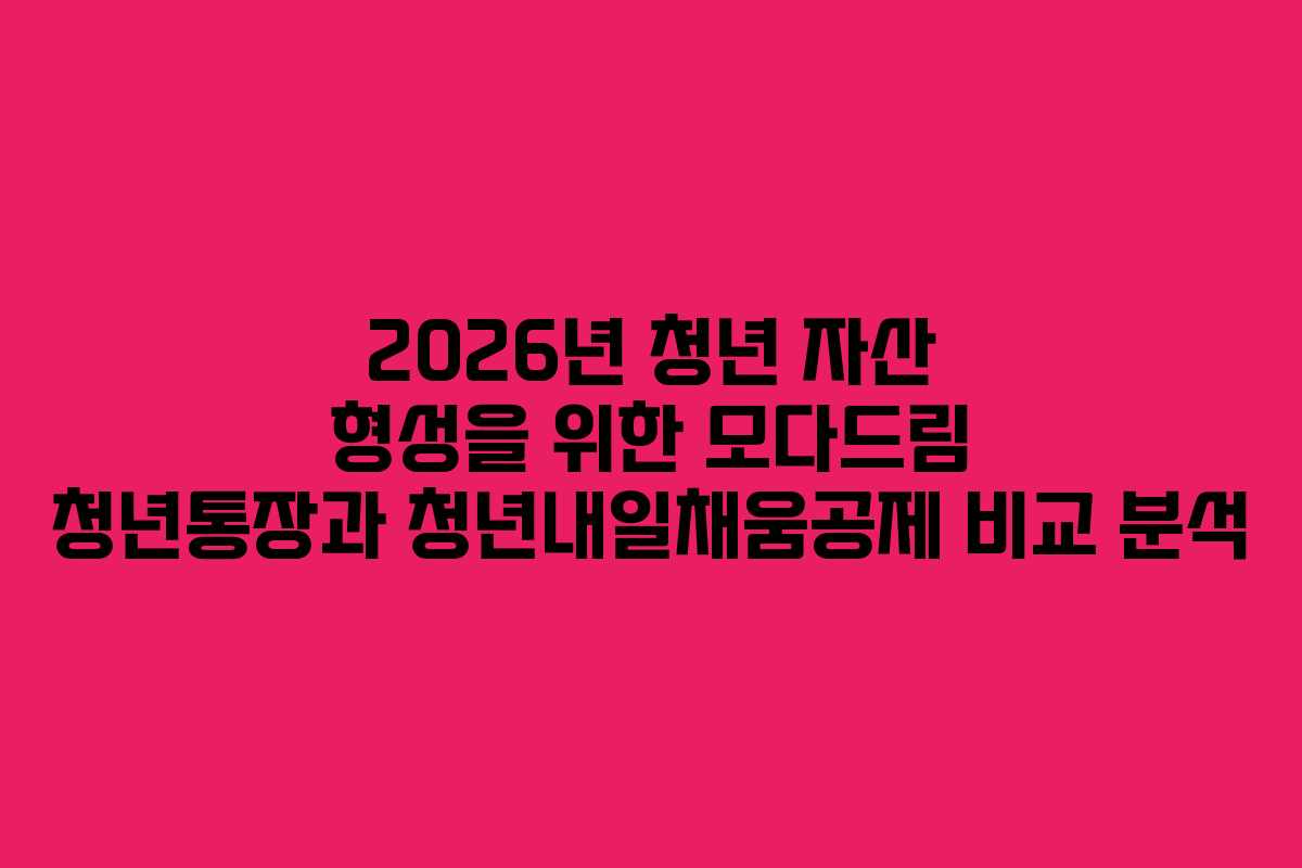2026년의 청년 자산 마련을 위한 정책이 다양해지고 있다. 그 중에서도 모다드림 청년통장과 청년내일채움공제는 특히 주목할 만한 상품이다. 이 두 프로그램은 청년들이 목돈을 마련하는 데 큰 도움을 주며, 각각의 조건에 따라 적합한 선택이 가능하다.