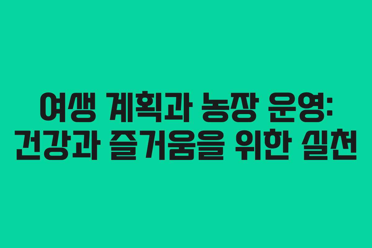 지금 바로 자신만의 농장 운영 계획을 세워보는 것이 중요하다. 이를 통해 건강과 여유를 동시에 챙길 수 있는 기회를 만들 수 있다.