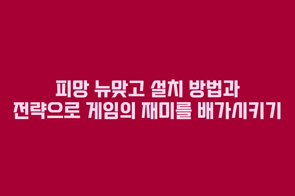 피망 뉴맞고는 많은 사용자들에게 사랑받는 게임으로, 즐거운 경험을 위해 설치 과정이 중요하다. 본 포스팅에서는 피망 뉴맞고를 설치하는 방법과 게임을 더욱 즐겁게 하는 팁을 제공할 것이다. 모든 단계에 따라 진행하면 손쉽게 게임을 시작할 수 있다.