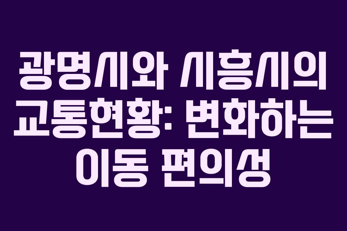 광명시와 시흥시는 최근 교통망의 변화로 인해 지역 주민들에게 보다 나은 이동 편의성을 제공하고 있다. 이 지역의 교통 현황을 살펴보면, 다양한 도로 및 철도망이 구축되고 있어 지역 경제와 생활 편의성이 개선되고 있다.