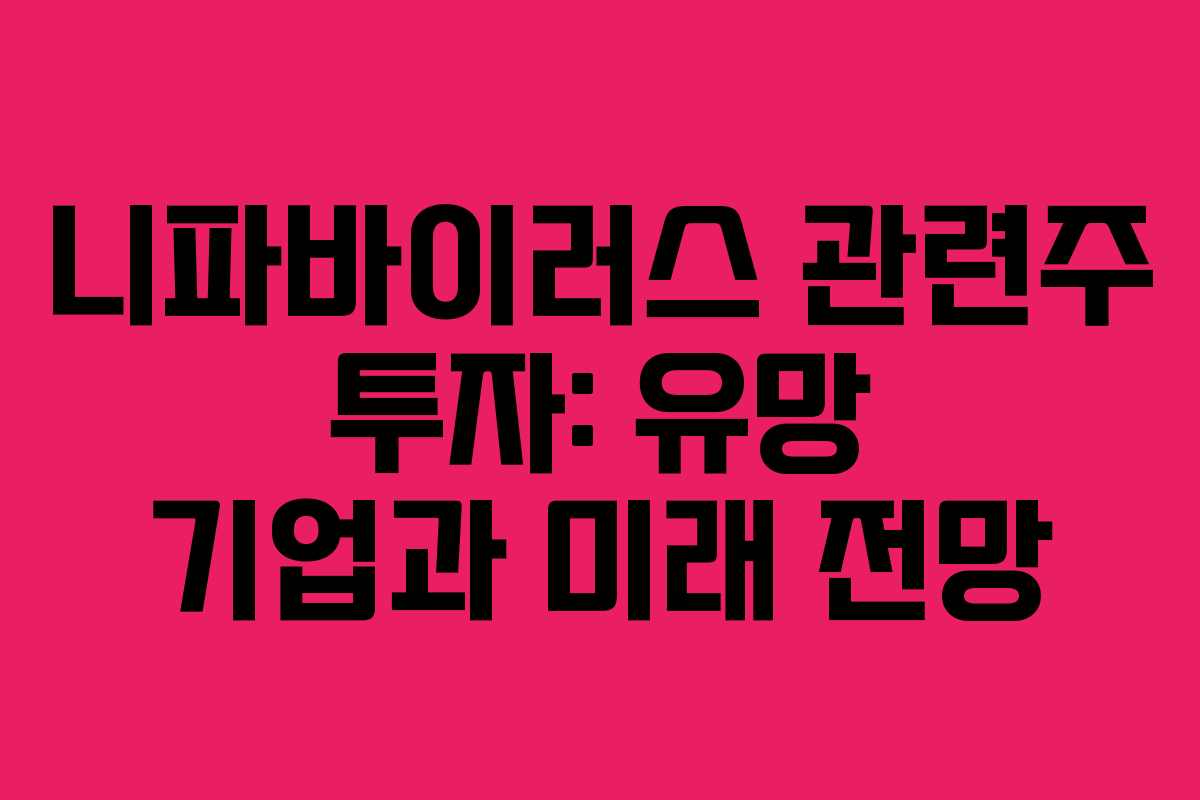 니파바이러스와 같은 감염병 관련주에 투자할 때는 기업의 실질적 가치와 장기적 성장 가능성을 고려해야 합니다. 바이오 분야는 임상 실패율이 높고, 상용화까지 오랜 시간이 걸리기 때문에 철저한 분석이 필요합니다.