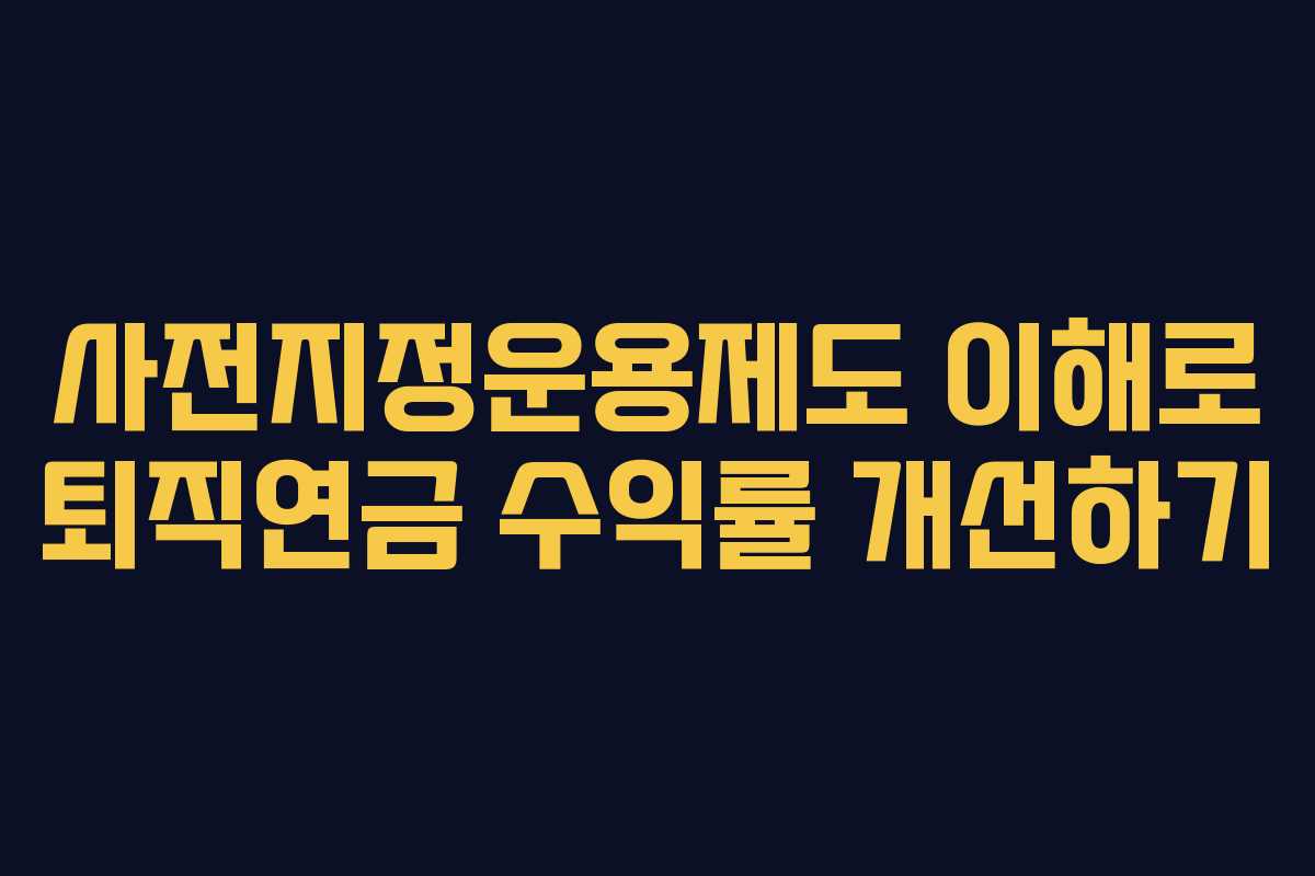 퇴직연금 시장에서 최근 가장 주목받는 주제는 사전지정운용제도이다. 이 제도는 2023년 7월 12일 시행된 ‘근로자퇴직급여 보장법’에 따라 도입되었다. 사전지정운용제도는 DC형 퇴직연금과 개인형퇴직연금(IRP) 가입자가 적립금 운용 방법을 스스로 정하지 않을 경우, 미리 정해진 방식으로 운용하도록 하는 제도이다. 이로 인해 퇴직연금의 수익률을 개선할 수 있는 기회가 열린다.