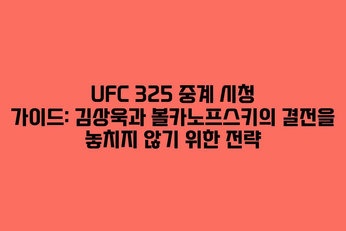 UFC 325 중계 시청 가이드: 김상욱과 볼카노프스키의 결전을 놓치지 않기 위한 전략