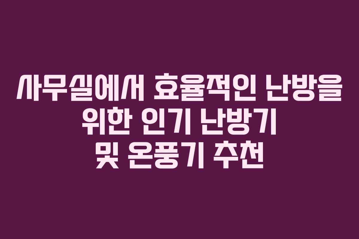 겨울철 사무실에서 따뜻한 환경을 유지하는 것은 매우 중요하다. 특히 날씨가 추워지면 난방기나 온풍기의 필요성이 더욱 부각된다. 이번 포스팅에서는 사무실에서 사용할 수 있는 효율적인 난방기와 온풍기를 추천하는 내용을 다뤄보겠다. 다양하고 인기 있는 제품들을 살펴보고, 각 제품의 특징을 자세히 알아보자.