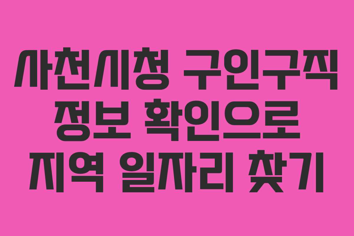 지역 내에서 원하는 직장을 찾기 위한 노력은 결코 쉬운 일이 아닐 수 있지만, 이러한 자원들을 이용하면 더 많은 기회를 열 수 있습니다. 사천시청의 구인구직 정보를 잘 활용하여 원하는 일자리를 찾기를 바랍니다.