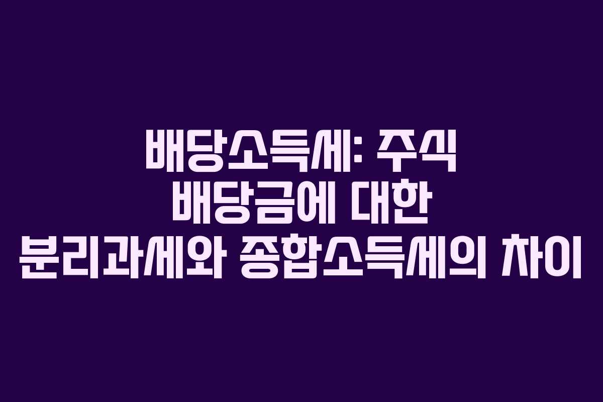 배당소득세는 금융 소득세의 일환으로, 이자와 배당소득에 부과되는 세금이다. 많은 투자자들이 주식 투자에서 발생하는 배당금을 받을 때 이 세금에 대한 이해가 필요하다. 특히 분리과세와 종합소득세의 차이점은 배당소득세를 절세하는 데 중요한 요소로 작용한다.