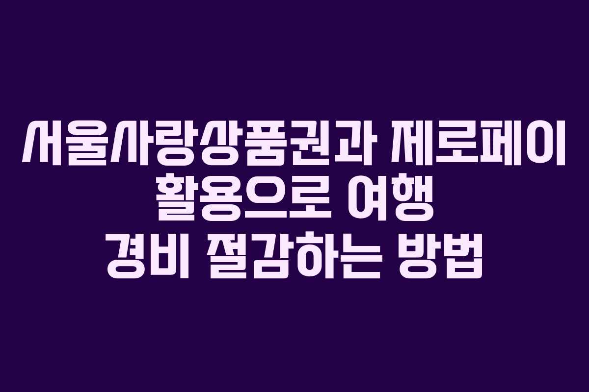 서울사랑상품권과 제로페이를 통한 여행 경비 절감 전략