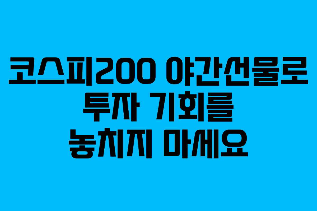 코스피200 야간선물은 코스피200 지수를 기반으로 하는 선물 상품이며, 국내 시장이 마감된 후에도 거래가 이루어집니다. 이는 글로벌 시장의 영향을 즉각적으로 반영하는 특성을 가지고 있습니다.