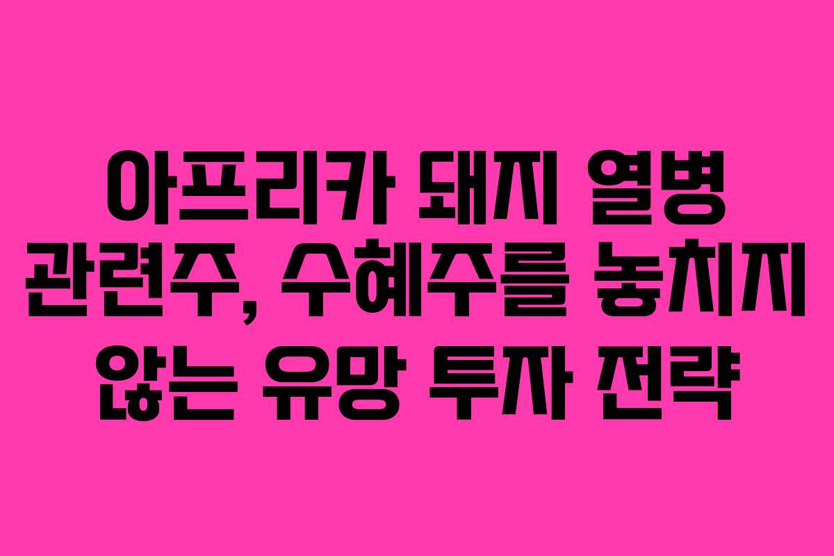 아프리카 돼지 열병(ASF)은 단순한 가축 질병이 아니라 경제 전반에 큰 영향을 미치는 중요한 이슈입니다. 2026년 현재 ASF가 다시 확산세를 보이면서, 이에 따른 수혜주와 대장주를 분석하는 것이 필수적입니다. 이번 글에서는 ASF 관련주를 통해 어떤 기업이 투자에 유리한지 살펴보겠습니다.