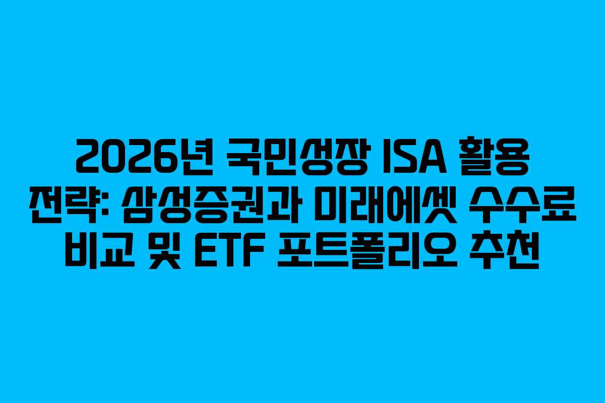 2026년 새로운 국민성장 ISA 제도가 시행되면서, 많은 사람들이 이 기회를 활용해 자산을 늘리고자 합니다. 특히, 30대 직장인들이 선호하는 ETF 투자와 세액공제 혜택을 최대한으로 활용하기 위해 수수료를 비교하고, 실전 포트폴리오를 구성하는 것이 중요합니다. 본 포스트에서는 삼성증권, 미래에셋, 나무증권의 수수료를 분석하고, 효과적인 ETF 포트폴리오를 제안합니다.