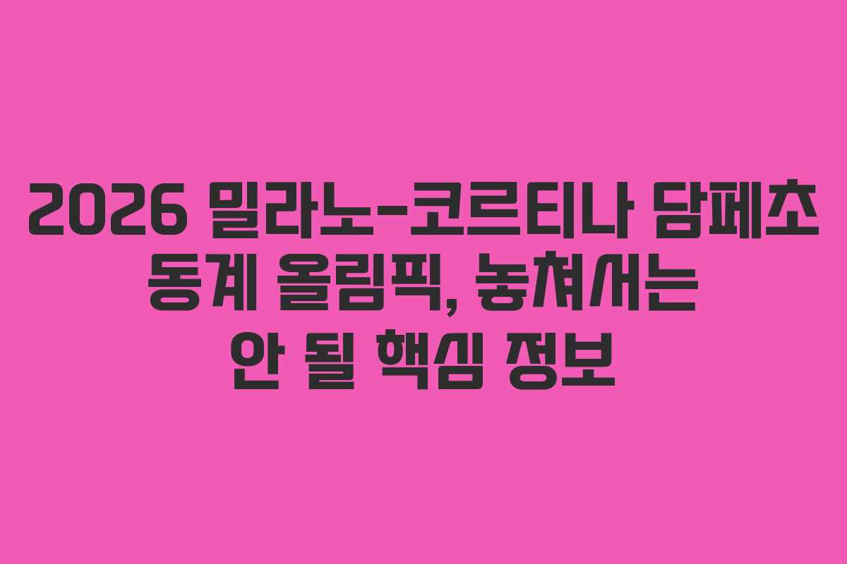 2026년 밀라노-코르티나 담페초 동계 올림픽이 곧 시작됩니다. 이 대회는 이탈리아의 두 도시에서 열리며, 스포츠 팬들에게 잊지 못할 경험을 선사할 예정입니다. 이제 대회에 대한 중요한 정보와 관전 포인트를 정리해 보겠습니다.