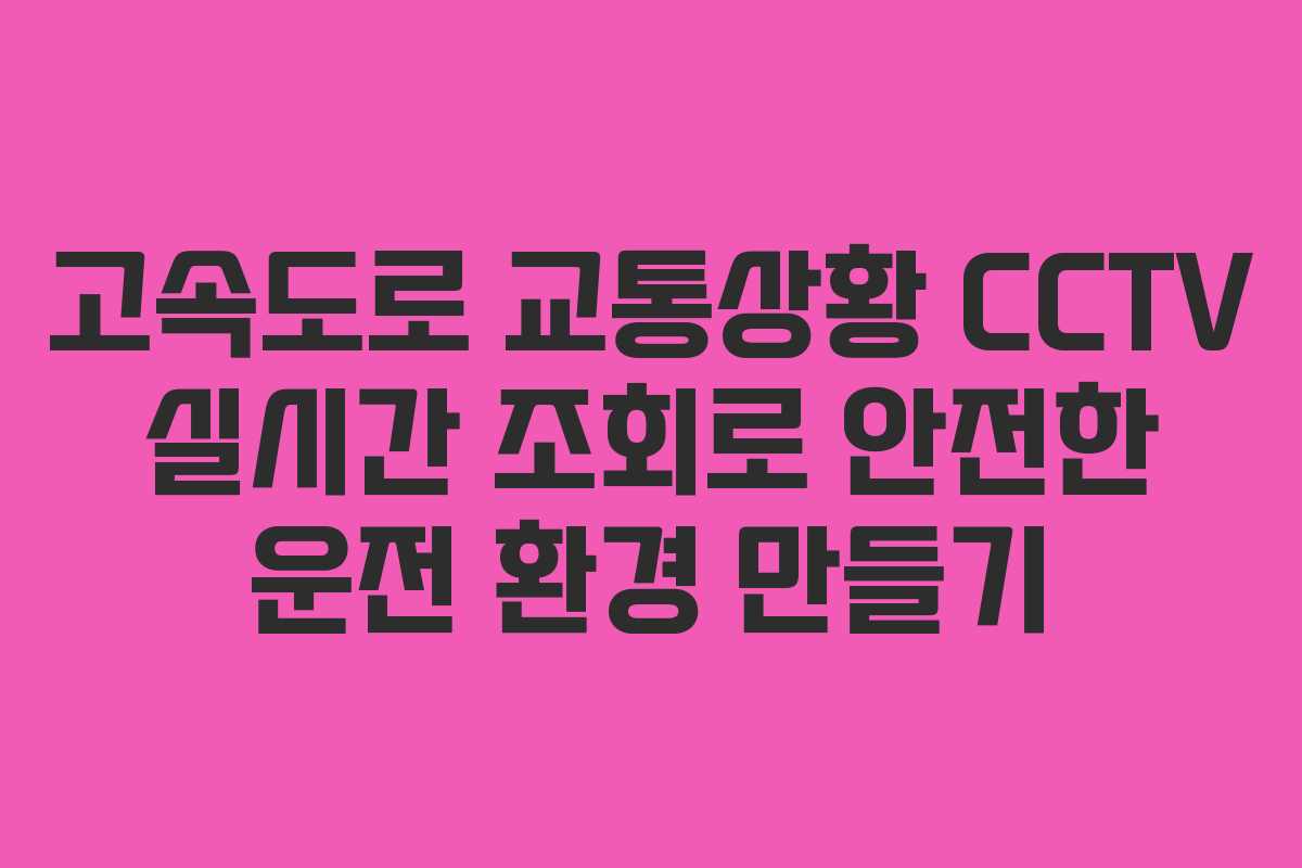 고속도로의 실시간 CCTV 영상을 조회하는 방법은 매우 간단합니다. 다음 단계를 통해 쉽게 접근할 수 있습니다.