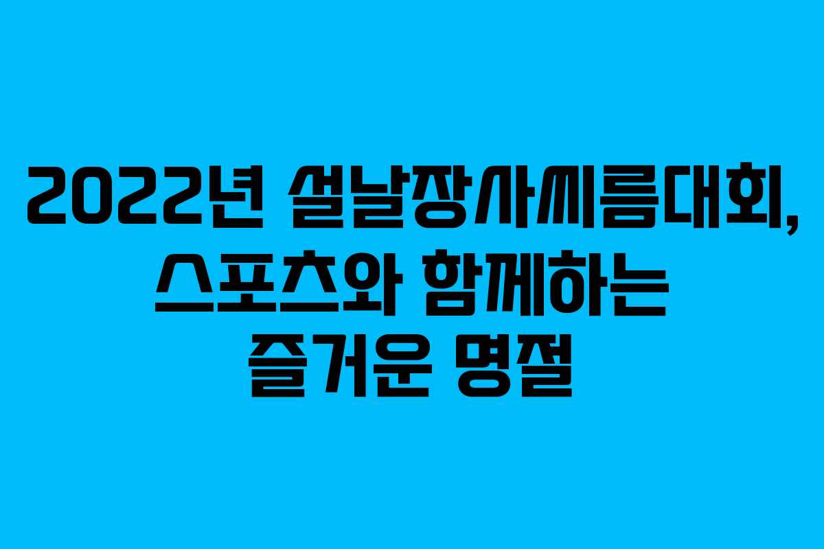 설날이 다가오면서 많은 사람들이 즐거운 명절을 보내기 위해 다양한 계획을 세우는 가운데, 씨름 경기가 특별한 즐거움을 선사할 예정이다. 2022년 설날장사씨름대회는 1월 28일부터 2월 2일까지 경기도 수원에서 개최된다. 이 대회는 씨름을 사랑하는 사람들에게는 오랜만에 열리는 기회로, 많은 이들이 기대하고 있다. 과거에 비해 젊은 세대에서도 씨름의 인기가 높아지고 있는 만큼, 이번 대회는 더욱 주목받고 있다.