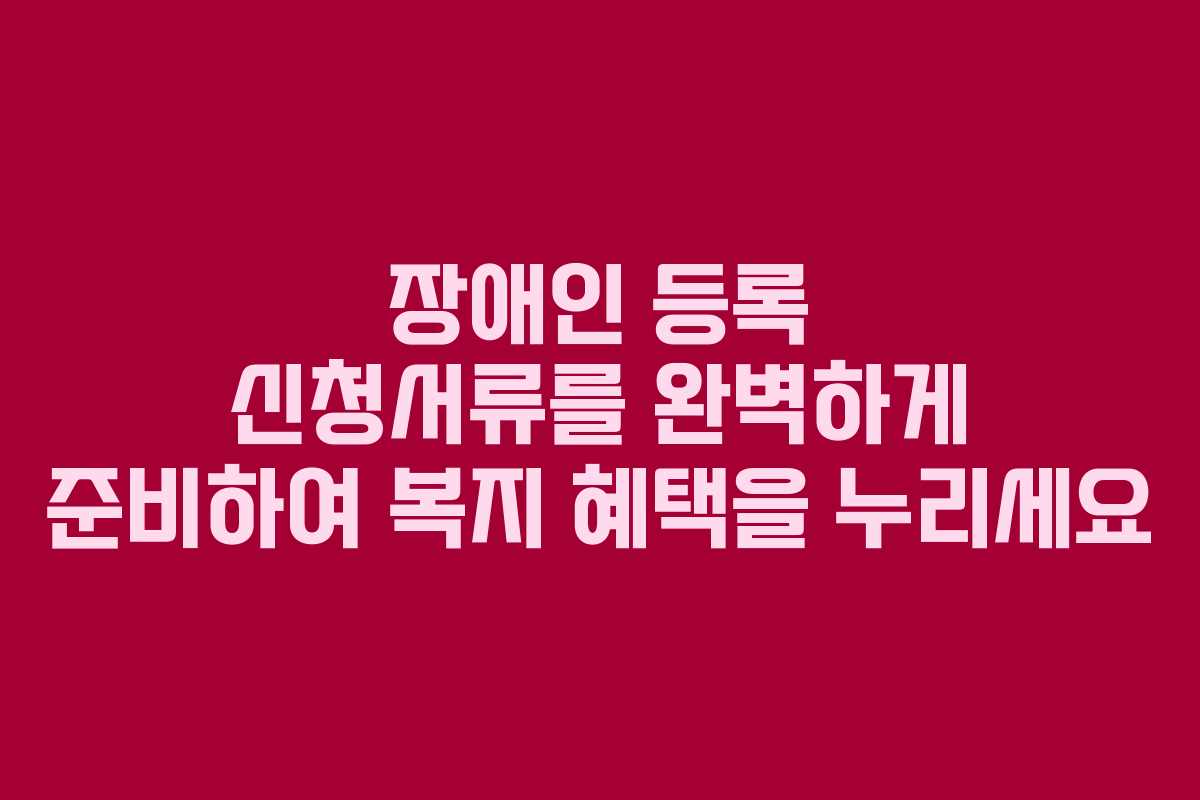 장애인 등록은 복지 서비스의 기초가 되며, 이를 통해 다양한 지원을 받을 수 있는 첫 단계입니다. 장애인 등록 신청서류를 통해 필요한 혜택을 수령할 수 있는 기회를 부여받게 됩니다. 이번 글에서는 장애인 등록을 위한 신청서류와 관련된 정보, 준비 방법, 그리고 유의사항 등을 깊이 있게 살펴보겠습니다.