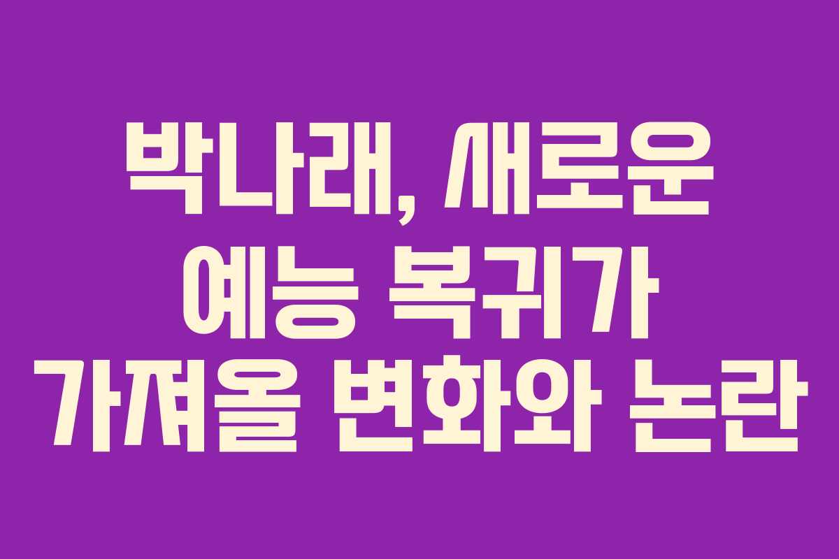 - 박나래의 복귀에 대한 대중의 반응은 어떤가요?