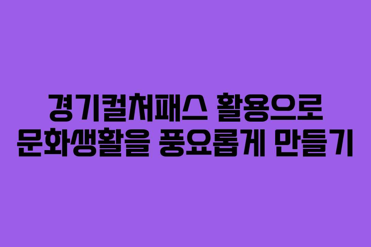 경기컬처패스는 경기도민에게 다양한 문화활동을 저렴하게 즐길 수 있는 기회를 제공합니다. 이 프로그램은 영화, 공연, 전시 등 여러 문화 콘텐츠에 대한 지원을 통해 문화소비를 촉진하고 있습니다. 만약 경기컬처패스를 통해 제공되는 혜택을 제대로 활용하고자 한다면, 정확한 신청 방법과 인증 오류 해결, 사용처를 충분히 이해해야 합니다.
