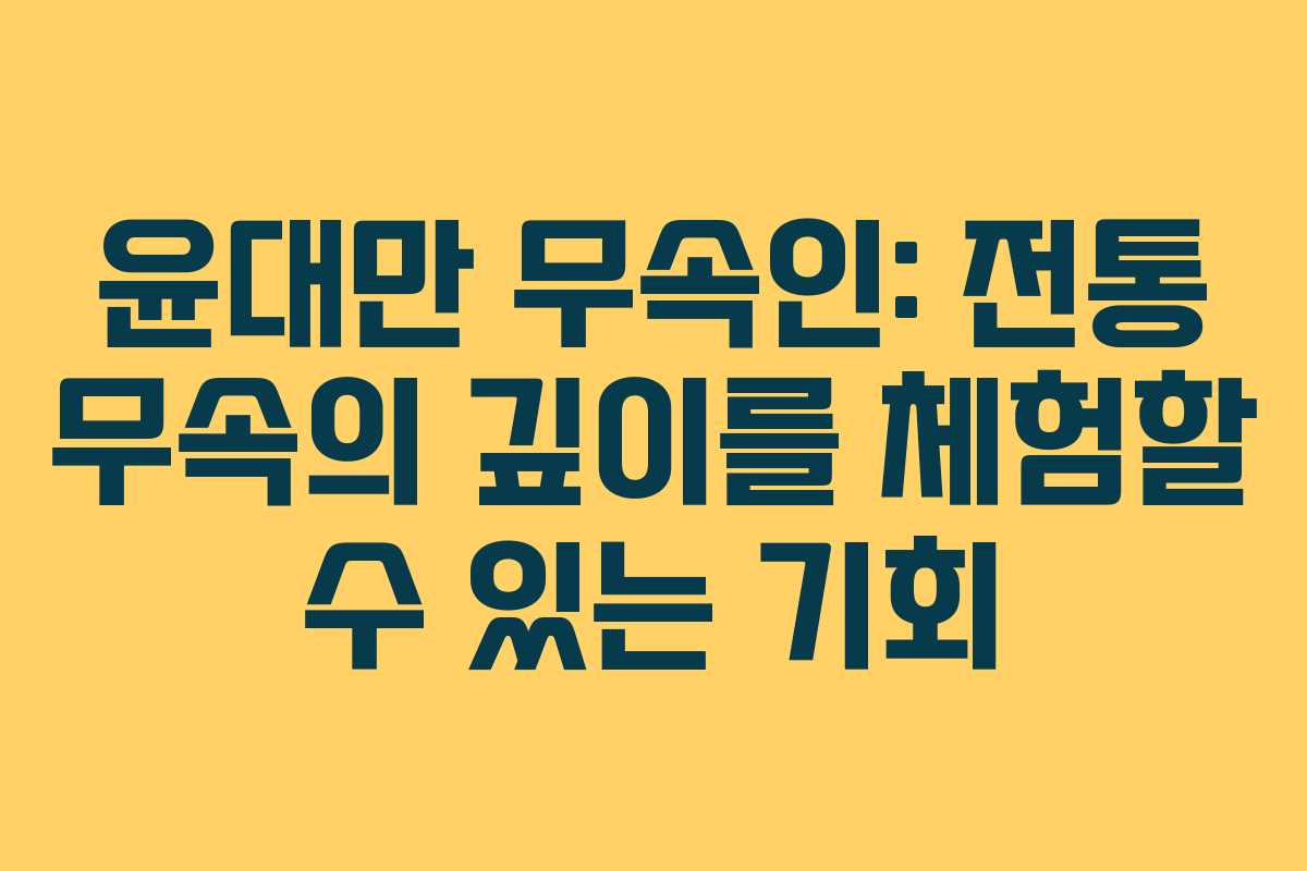 윤대만 무속인은 한국의 전통 무속 신앙을 현대적으로 해석하며 많은 사람들에게 신뢰를 받고 있는 인물이다. 최근 방송된 디즈니+의 <운명전쟁49>에서는 그의 독특한 상담 방식과 신령님의 메시지를 전달하는 능력이 화제가 되었다. 전통문화와 예술적 감각을 겸비한 그는 많은 이들에게 깊은 감동을 주고 있으며, 상담을 통해 다양한 인생의 해답을 제시하고 있다.