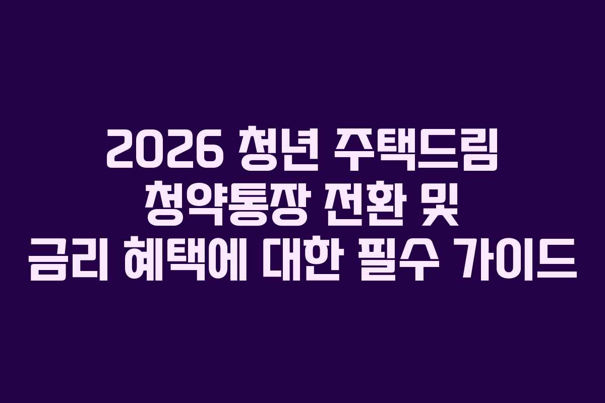 2026년 상반기를 맞이하여 청년들에게 제공되는 주택 금융 상품에 대한 관심이 급증하고 있습니다. 특히, 청년 주택드림 청약통장은 매력적인 금리와 비과세 혜택으로 많은 이들의 주목을 받고 있습니다. 본 문서에서는 청년 주택드림 청약통장의 전환 방법과 그에 따른 다양한 혜택을 자세히 살펴보겠습니다.