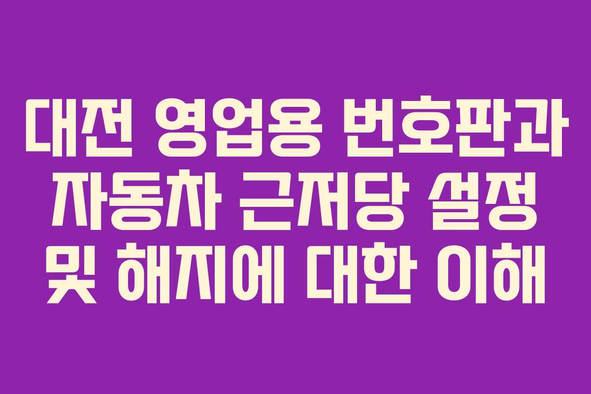 대전의 자동차등록 사업소 및 관련 금융기관이 근저당 설정과 해지에 대한 전문적인 도움을 제공합니다. 사전에 상담을 통해 필요한 정보를 확인하는 것이 좋습니다.