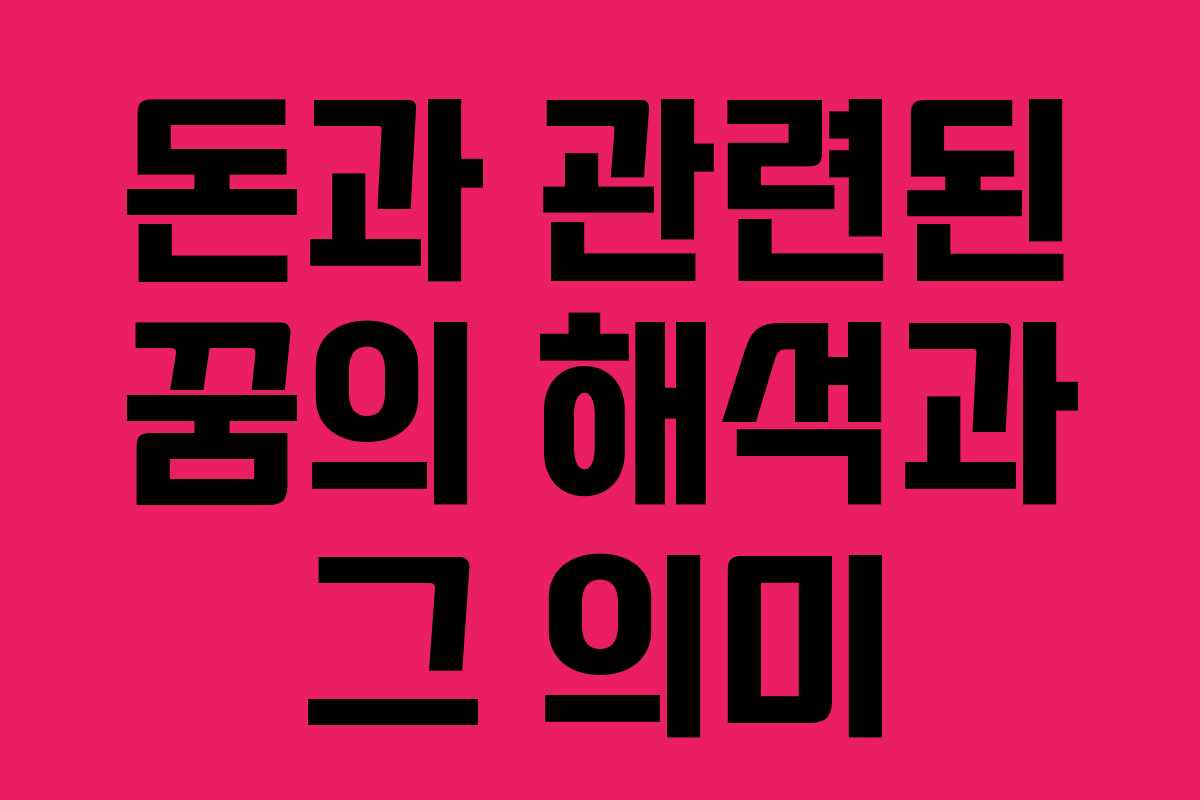 돈과 관련된 꿈은 많은 사람들에게 흥미롭고도 복잡한 주제로 다가옵니다. 꿈속에서 돈을 얻거나 잃는 경험은 우리의 심리상태와 직결되어 있으며, 그 해석은 개인의 상황에 따라 달라질 수 있습니다. 2026년을 기준으로, 돈과 관련된 다양한 꿈의 의미를 살펴보겠습니다.