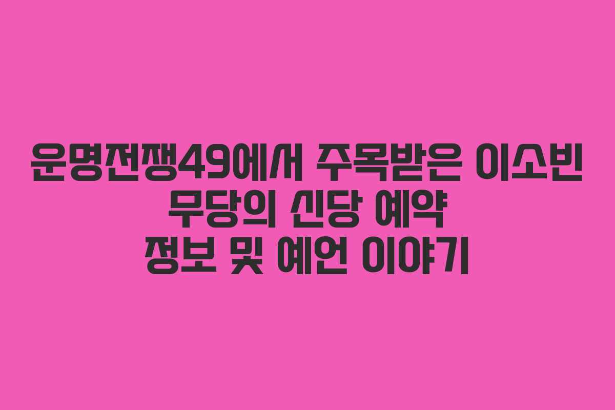 최근 디즈니 플러스에서 방영된 예능 프로그램 운명전쟁49는 49명의 운명술사가 참가하여 그들의 능력을 겨루는 모습으로 많은 이들의 관심을 끌었습니다. 그 중에서도 특별히 주목을 받았던 인물은 바로 26세의 젊은 무당 이소빈입니다. 놀랍게도 이소빈은 7살에 무속의 길을 걷기 시작해 현재까지 20년의 경력을 쌓아온 인물입니다. 그녀의 자신감 있는 태도와 뛰어난 능력은 방송을 통해 많은 이들에게 인상 깊게 남았습니다.