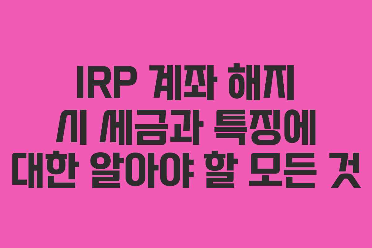 IRP 계좌 해지 시 세금과 특징에 대한 알아야 할 모든 것