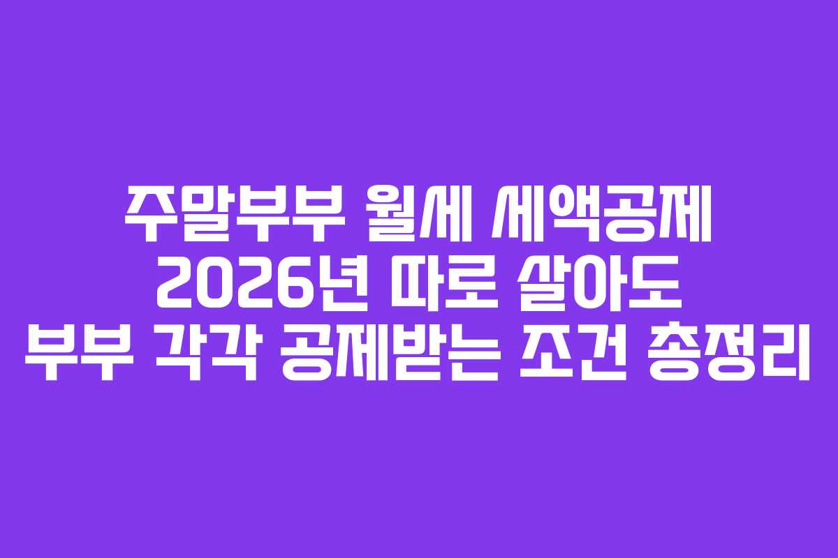 2026년부터 주말부부가 각각 월세 세액공제를 받을 수 있는 새로운 규정이 시행됩니다. 이 제도는 서로 다른 지역에서 거주하는 맞벌이 부부에게 공정한 혜택을 제공하기 위한 것입니다. 본 글에서는 주말부부 월세 세액공제의 적용 조건, 공제 한도, 신청 방법 및 주의사항을 상세히 정리하였습니다.