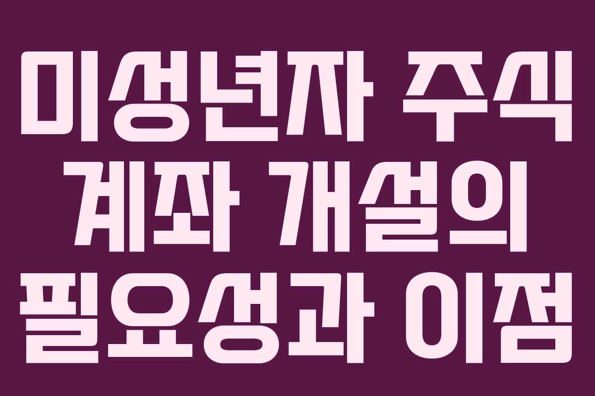 미성년자 주식 계좌 개설의 필요성과 이점