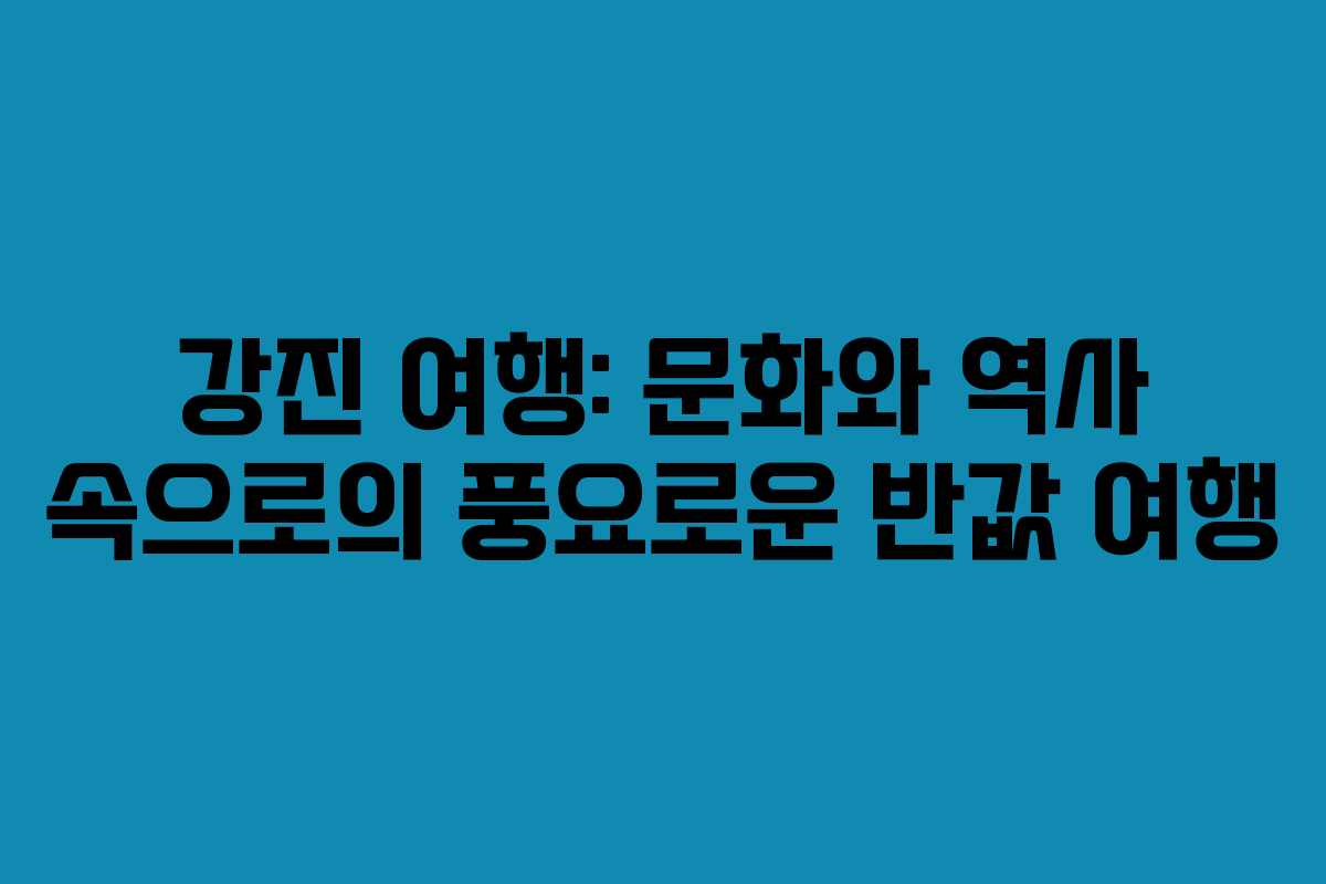 강진은 역사와 문화가 살아 숨 쉬는 곳이다. 이번 여행을 통해 강진의 아름다움과 매력을 다시 한 번 느낄 수 있었다. 반값 여행 프로그램을 통해 경제적 부담을 덜고, 더 많은 경험을 쌓을 수 있었던 점이 특히 좋았다. 강진에서의 시간은 소중한 기억으로 남아 있으며, 앞으로도 다시 방문하고 싶은 마음이 든다. 강진 반값여행은 진정한 여행의 의미를 되새기게 해주었다.