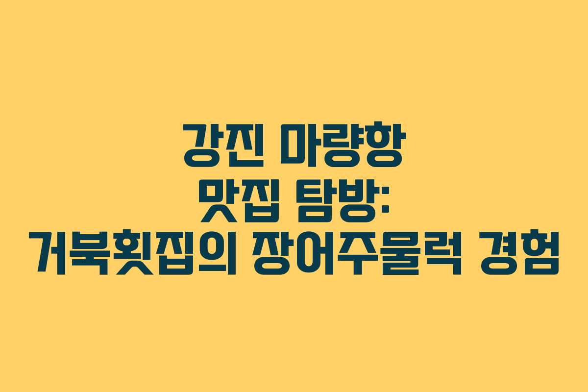 가족과 함께 떠난 강진의 반값여행은 예상보다 더 즐거웠습니다. 강진 마량항으로의 이동 중, 현지인들이 추천하는 거북횟집에 들러 특별한 장어주물럭을 맛보았습니다. 이곳은 단순한 식사가 아니라, 맛과 분위기에서 모두가 만족할 수 있는 경험이었습니다. 이제 거북횟집의 매력을 자세히 소개하겠습니다.