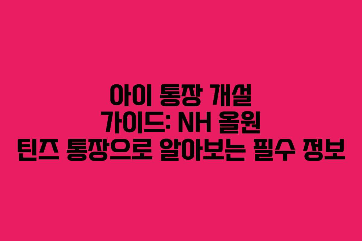- NH 올원 틴즈 통장: 어린이를 위한 최적의 선택