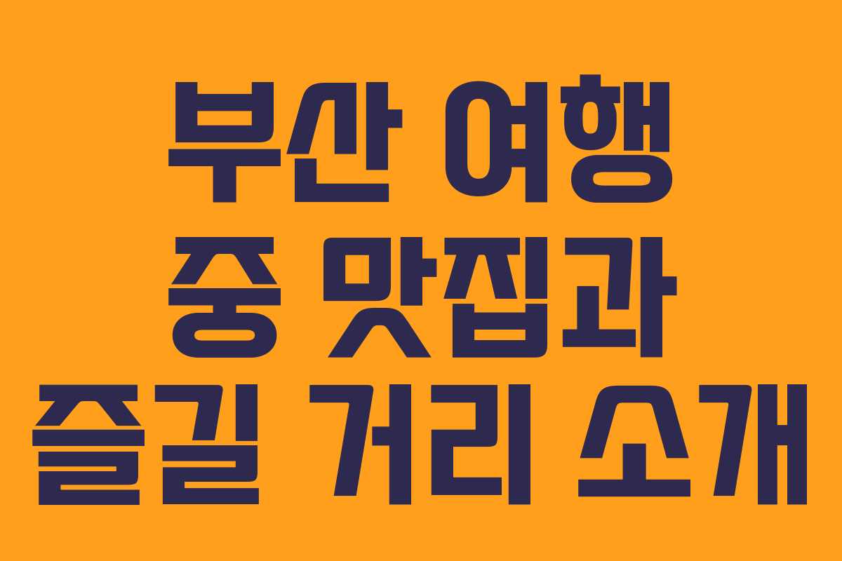 부산의 맛집과 멋진 장소를 찾아가는 여행, 여러분도 꼭 경험해보세요.