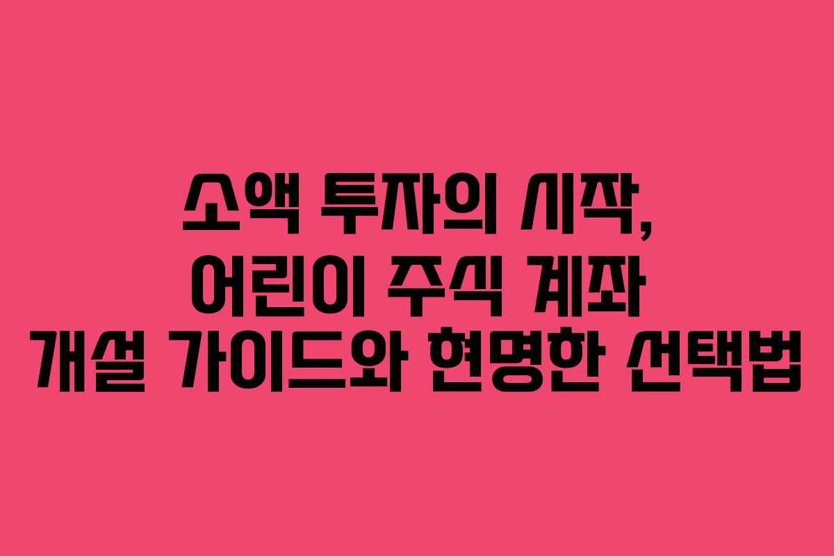 - 어린이 주식 계좌 개설의 필요성과 최신 동향