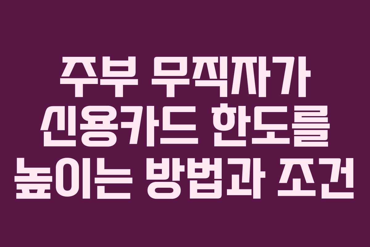 주부 무직자들이 신용카드를 발급받고 한도를 높이기 위해서는 여러 가지 어려움이 따릅니다. 소득 증빙이 어렵고 재정적 안정성을 입증하기가 까다로운 상황에서 신용카드의 필요성이 커지고 있습니다. 이러한 조건을 극복하고 신용카드 한도를 높이기 위해서는 신중한 접근이 필요합니다. 본 가이드는 주부 무직자들이 신용카드 한도를 높이는 다양한 방법과 주의해야 할 점들을 정리하여 제공하고자 합니다.