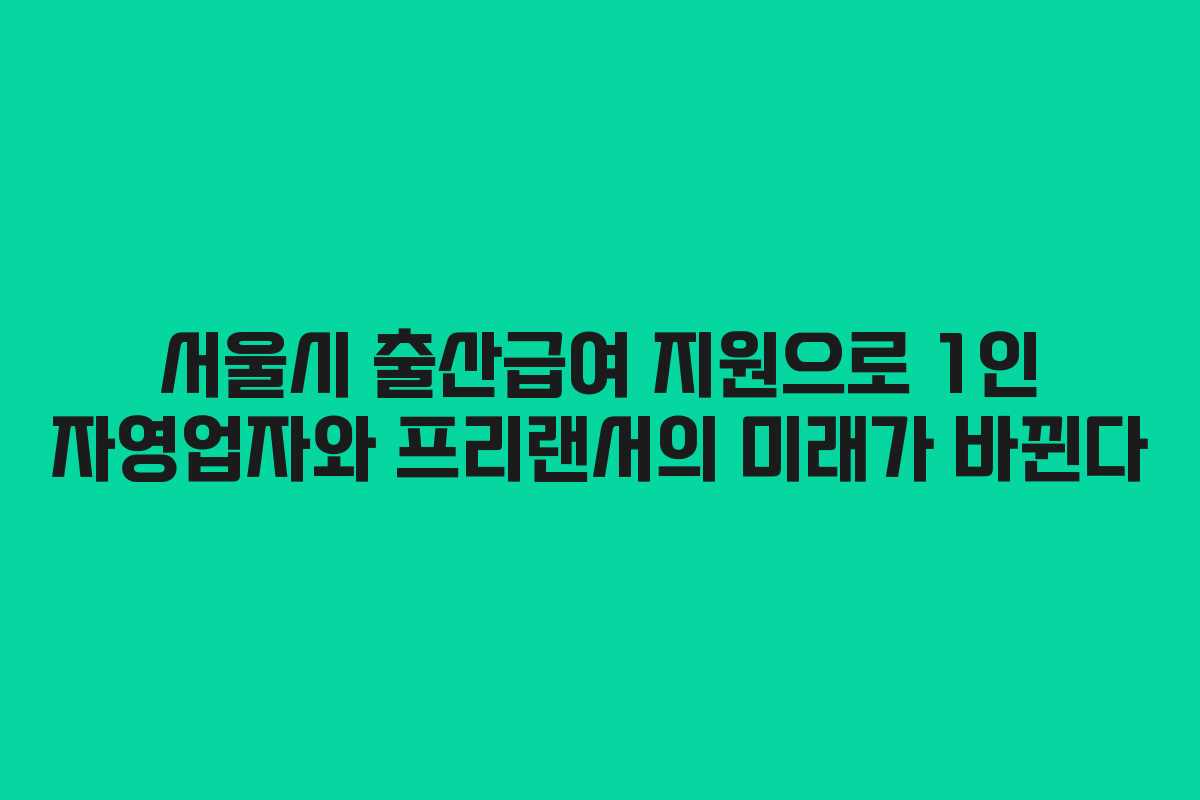 서울시 출산급여 지원으로 1인 자영업자와 프리랜서의 미래가 바뀐다