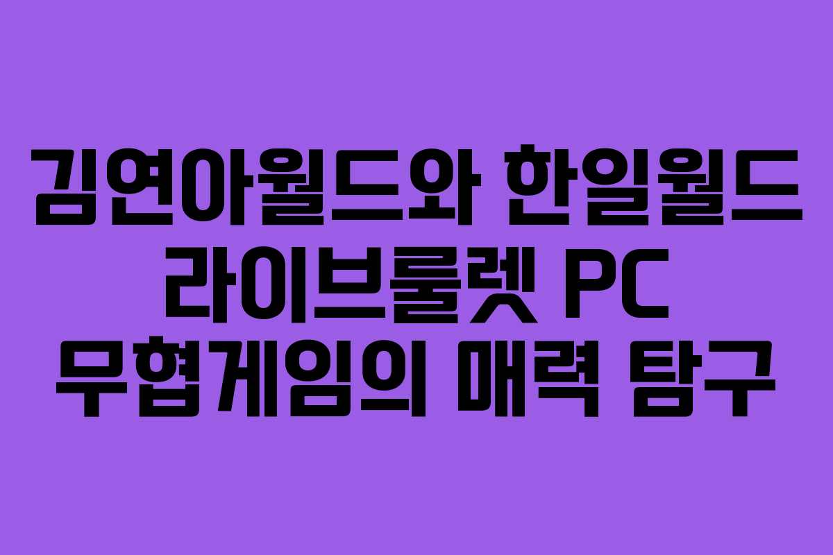 김연아월드와 한일월드 라이브룰렛 PC 무협게임의 매력 탐구