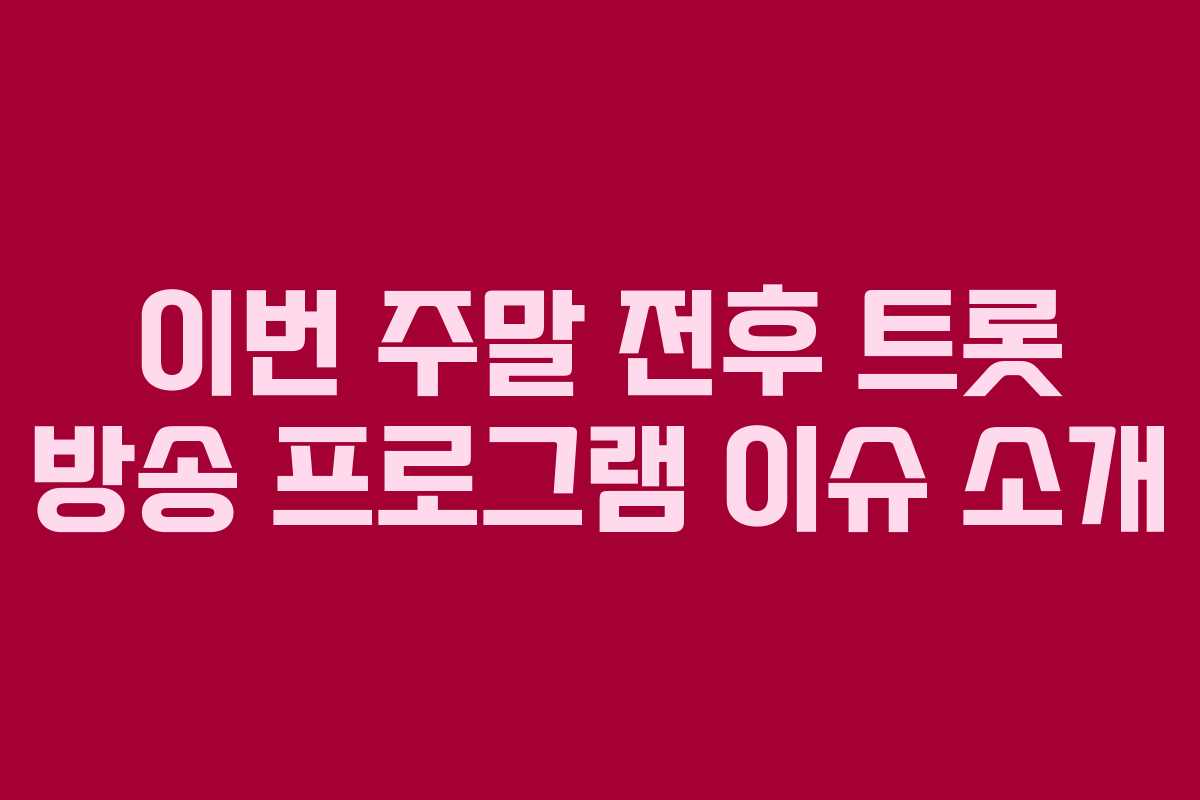 이러한 프로그램들은 각기 다른 매력을 발산하며, 트롯 팬들에게 새로운 즐거움을 선사하고 있다. 이번 주말 방송되는 프로그램들을 살펴보자.