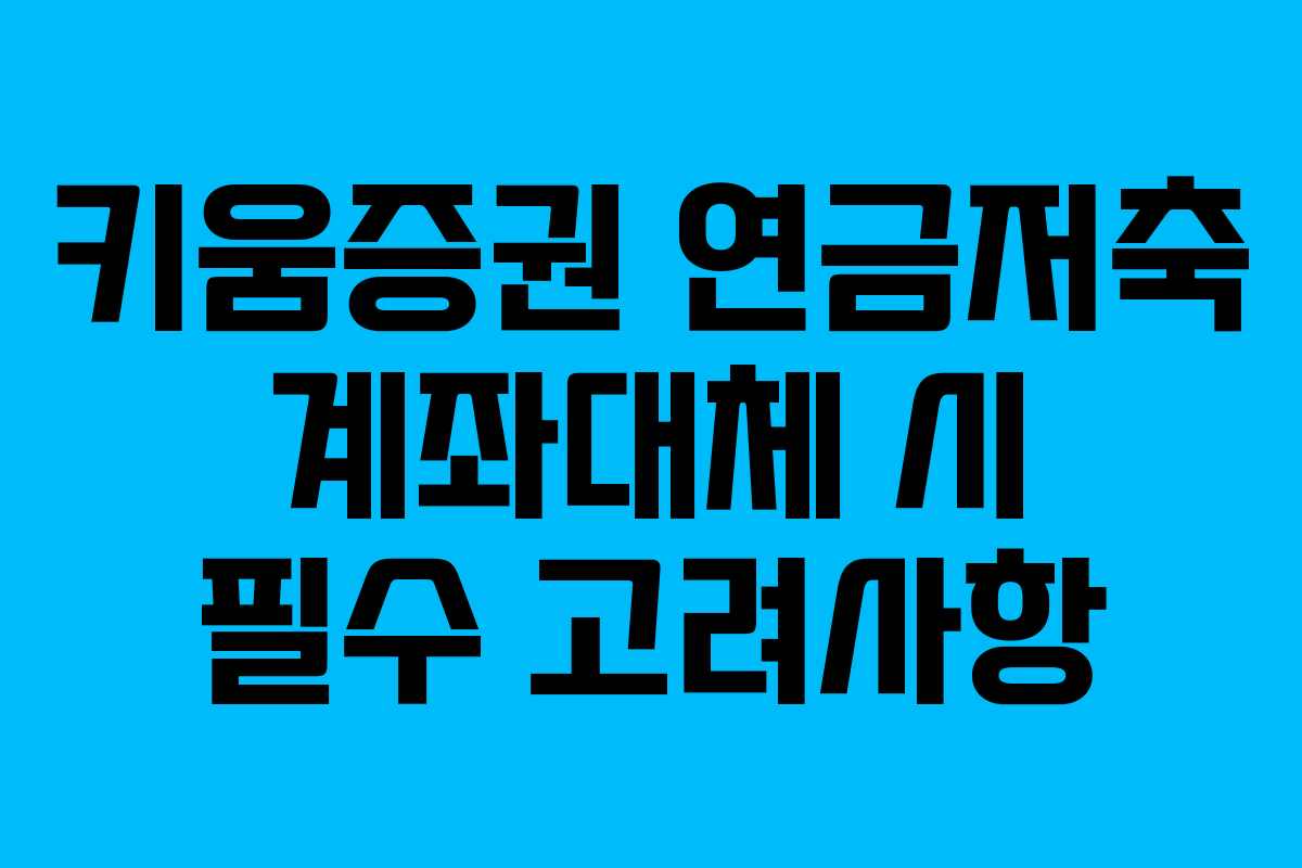키움증권 연금저축 계좌 대체의 현실적 고려사항