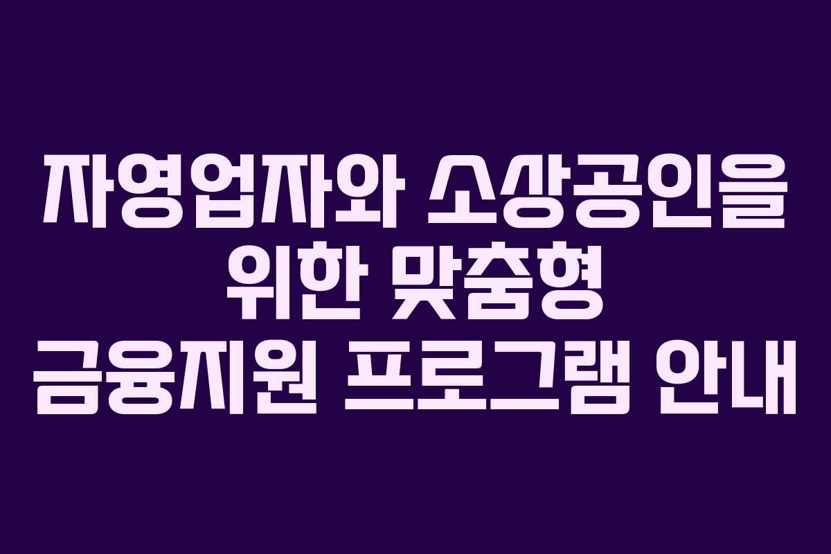 자영업자와 소상공인을 위한 맞춤형 금융지원 프로그램 안내