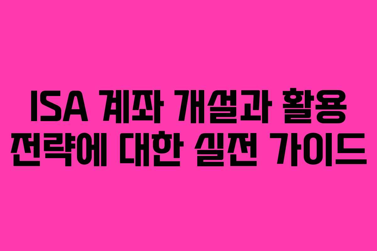 - ISA 계좌 개설 및 활용을 위한 구체적 단계