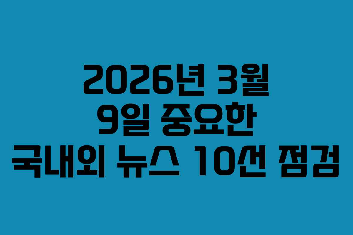2026년 3월 9일, 오늘의 뉴스는 세계 각국에서 발생하는 주요 사건들로 가득 차 있습니다. 특히 중동발 에너지 위기가 우리 경제와 생활에 미치는 영향이 심각해지고 있습니다. 이번 기회를 통해 꼭 알아두어야 할 10가지 뉴스를 정리하였습니다.
