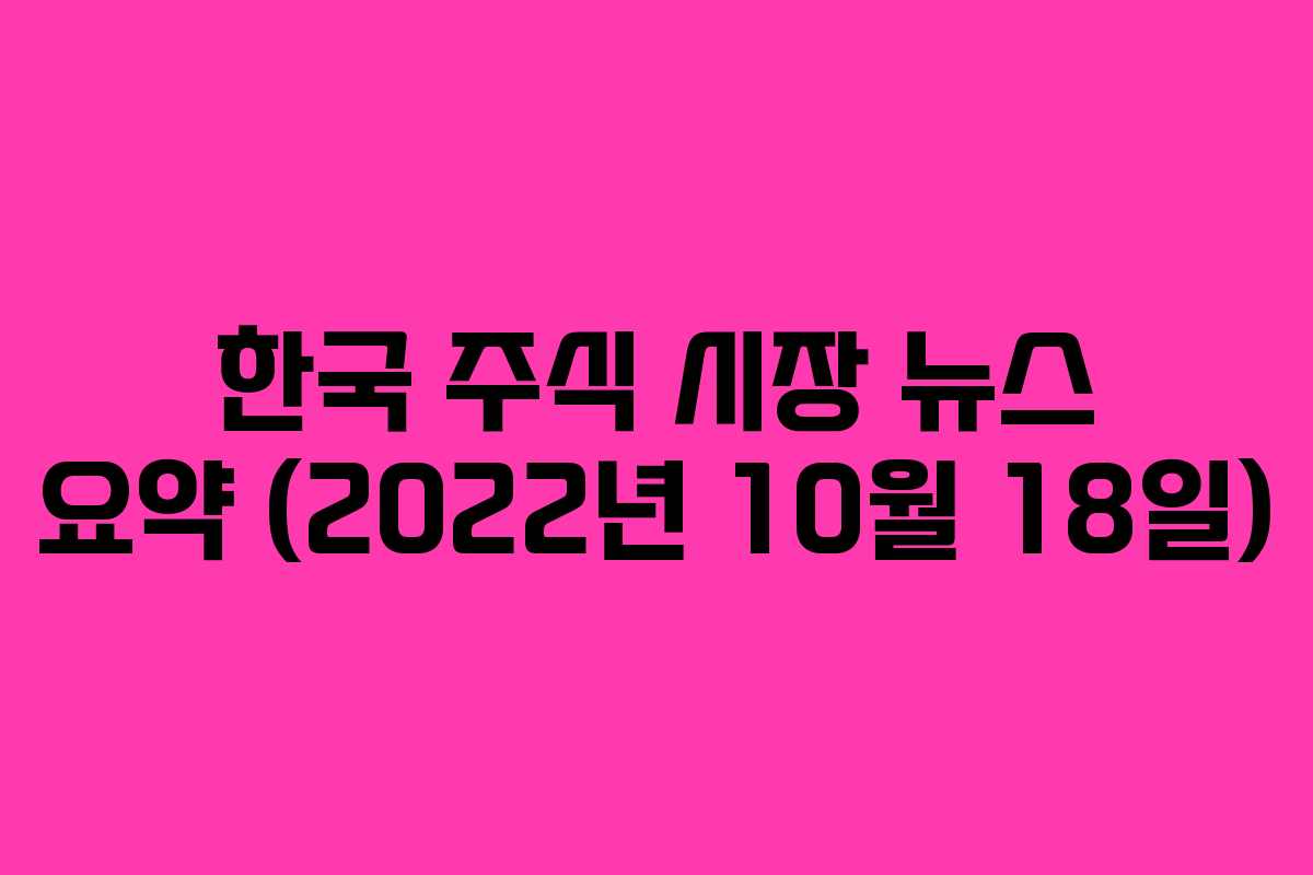 2022년 10월 18일 한국 주식 시장에서는 다양한 기업들의 주요 소식이 보도되었다. 각 기업의 움직임은 투자자들에게 깊은 관심을 끌었으며, 향후 시장 전망에 영향을 미칠 것으로 예상된다.