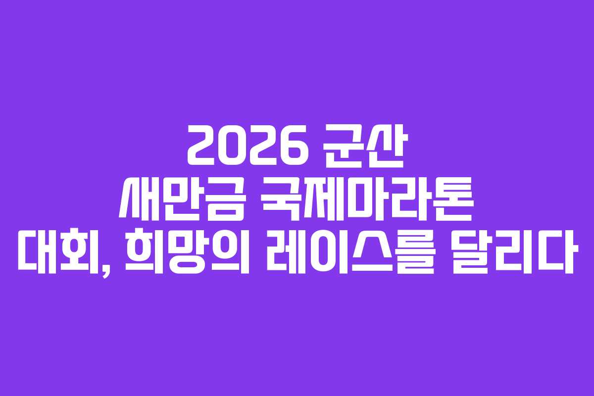 2026년 군산 새만금 국제마라톤 대회는 단순한 스포츠 이벤트가 아니라 지역 사회의 결속과 희망의 상징입니다. 참가자들은 각자의 목표를 가지고 대회에 임하며, 그 과정에서 얻는 경험은 각자의 삶에 긍정적인 영향을 미칠 것입니다. 군산의 아름다운 자연 속에서 마라톤을 즐기며, 또 하나의 특별한 기억을 만들어 가길 바랍니다.