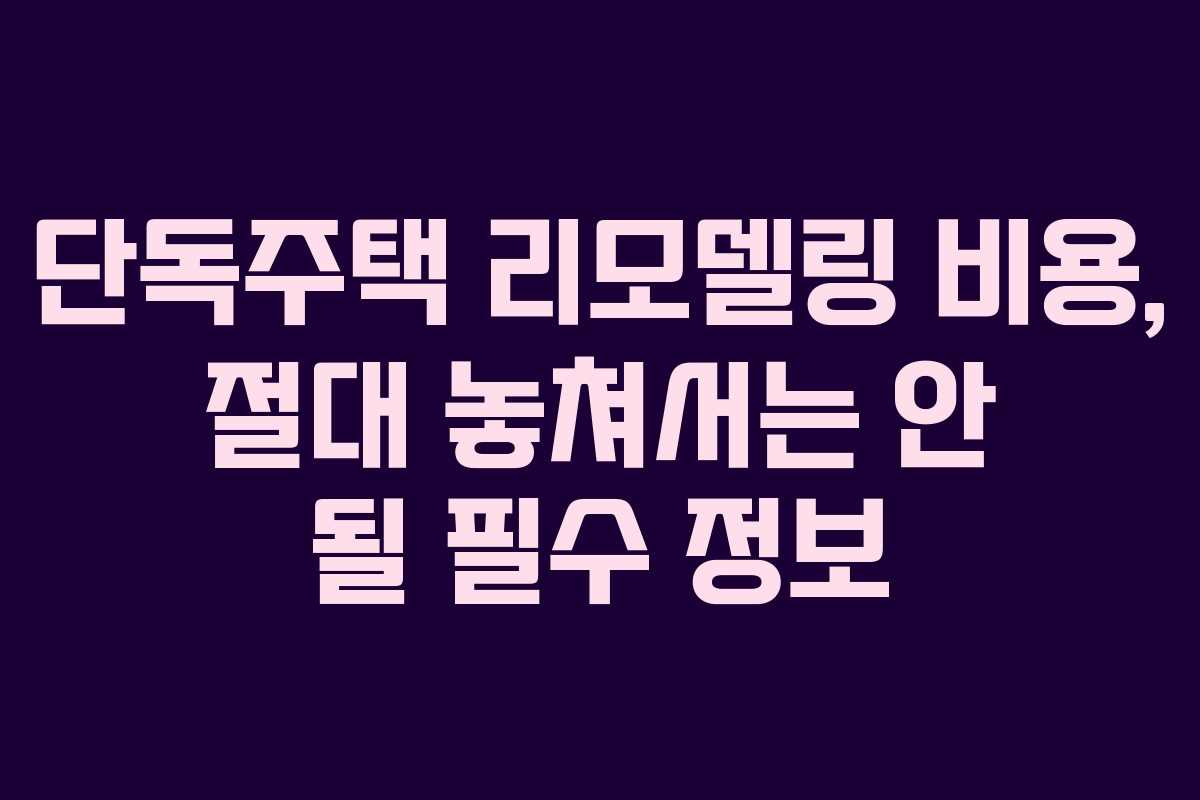 단독주택 리모델링 비용, 절대 놓쳐서는 안 될 필수 정보