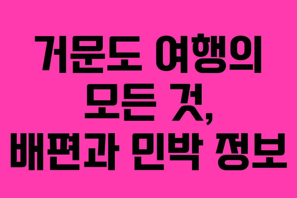 여수에서 꼭 가봐야 할 섬으로 떠오르는 거문도. 아름다운 자연과 고요한 풍경이 어우러져 힐링을 원하는 이들에게 최적의 장소입니다. 이번 포스팅에서는 거문도를 방문하기 위해 알아야 할 배편과 민박 정보를 정리해 보았습니다. 거문도 여행을 계획하고 있는 분들에게 유용한 팁이 되길 바랍니다.