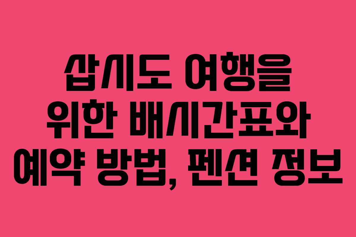 삽시도는 아름다운 자연과 다양한 활동으로 많은 여행객에게 사랑받는 섬입니다. 이곳에서의 여행을 계획하는 분들을 위해 2026년 기준의 삽시도 배시간표, 예약 방법, 그리고 펜션 정보를 자세히 안내드립니다. 삽시도에서의 특별한 경험을 만끽하기 위한 준비를 해보세요.
